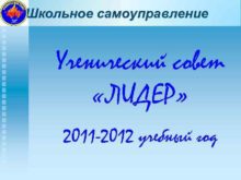Школьное самоуправление Ученический совет ЛИДЕР 2011 -2012 учебный