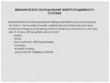 МЕХАНИЧЕСКОЕ ОБОРУДОВАНИЕ ЭЛЕКТРОПОДВИЖНОГО СОСТАВА Механическое оборудование предназначено для