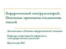 Хирургический инструментарий Основные принципы соединения тканей Дисциплина Основы