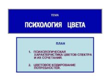 ТЕМА ПСИХОЛОГИЯ ЦВЕТА ПЛАН 1 ПСИХОЛОГИЧЕСКАЯ ХАРАКТЕРИСТИКА ЦВЕТОВ