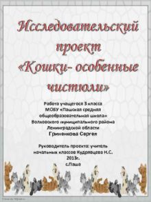 Исследовательский проект Кошки- особенные чистюли Работа учащегося 3