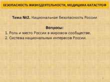 БЕЗОПАСНОСТЬ ЖИЗНЕДЕЯТЕЛЬНОСТИ МЕДИЦИНА КАТАСТРОФ Тема 2 Национальная