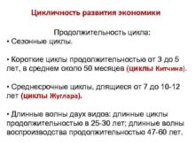 Цикличность развития экономики Продолжительность цикла Сезонные циклы
