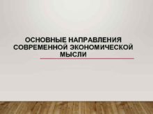 ОСНОВНЫЕ НАПРАВЛЕНИЯ СОВРЕМЕННОЙ ЭКОНОМИЧЕСКОЙ МЫСЛИ ОСНОВНЫЕ ЭТАПЫ