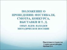 ПОЛОЖЕНИЕ О ПРОВЕДЕНИИ ФЕСТИВАЛЯ СМОТРА КОНКУРСА ВЫСТАВКИ И