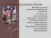 ПЕРВЫЕ ХУДОЖНИКИ ЗЕМЛИ Мировая культура возникла в первобытном