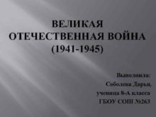 ВЕЛИКАЯ ОТЕЧЕСТВЕННАЯ ВОЙНА 1941 -1945 Выполнила Соболева Дарья