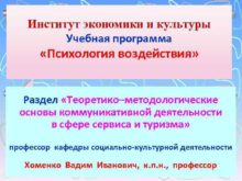 Институт экономики и культуры Учебная программа Психология воздействия