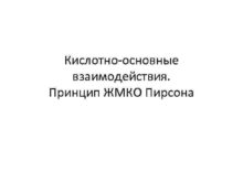 Кислотно-основные взаимодействия Принцип ЖМКО Пирсона Электролитическая теория