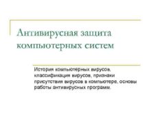 Антивирусная защита компьютерных систем История компьютерных вирусов классификация