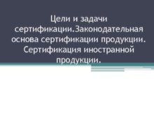 Цели и задачи сертификации Законодательная основа сертификации продукции