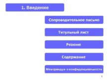 1 Введение Сопроводительное письмо Титульный лист Резюме Содержание