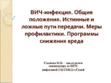 ВИЧ-инфекция Общие положения Истинные и ложные пути передачи