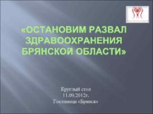 ОСТАНОВИМ РАЗВАЛ ЗДРАВООХРАНЕНИЯ БРЯНСКОЙ ОБЛАСТИ Круглый стол