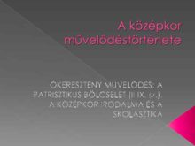 A középkor művelődéstörténete ÓKERESZTÉNY MŰVELŐDÉS A PATRISZTIKUS BÖLCSELET