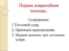 Первая доврачебная помощь Содержание 1 Тепловой удар 2