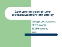 Дослідження зовнішнього середовища побічного впливу Методи дослідження PEST-аналіз