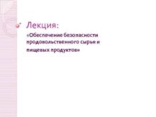 Лекция Обеспечение безопасности продовольственного сырья и пищевых продуктов