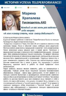 ИСТОРИЯ УСПЕХА TELEPERFORMANCE Марина Храпалева Руководитель АХО Каждый