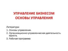 УПРАВЛЕНИЕ БИЗНЕСОМ ОСНОВЫ УПРАВЛЕНИЯ Литература 1 Основы управления