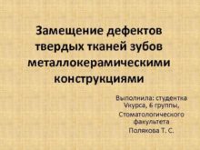 Замещение дефектов твердых тканей зубов металлокерамическими конструкциями Выполнила