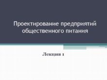 Проектирование предприятий общественного питания Лекция 1 Основная