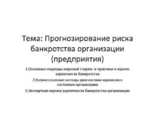 Тема Прогнозирование риска банкротства организации предприятия 1 Основные