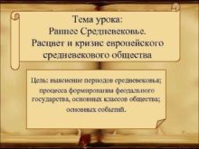 Тема урока Раннее Средневековье Расцвет и кризис европейского