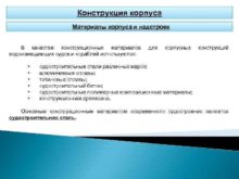 Конструкция корпуса Материалы корпуса и надстроек В качестве