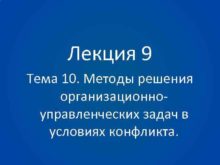 Лекция 9 Тема 10 Методы решения организационноуправленческих задач