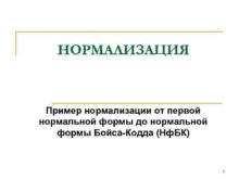НОРМАЛИЗАЦИЯ Пример нормализации от первой нормальной формы до