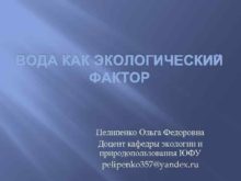 ВОДА КАК ЭКОЛОГИЧЕСКИЙ ФАКТОР Пелипенко Ольга Федоровна Доцент