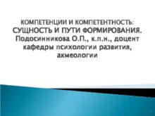 КОМПЕТЕНЦИИ И КОМПЕТЕНТНОСТЬ СУЩНОСТЬ И ПУТИ ФОРМИРОВАНИЯ Подосинникова