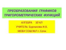 ПРЕОБРАЗОВАНИЯ ГРАФИКОВ ТРИГОРОМЕТРИЧЕСКИХ ФУНКЦИЙ АЛГЕБРА 10 КЛ УЧИТЕЛЬ
