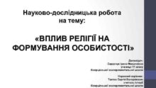 Науково-дослідницька робота на тему ВПЛИВ РЕЛІГІЇ НА ФОРМУВАННЯ