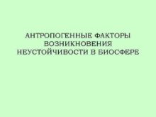 АНТРОПОГЕННЫЕ ФАКТОРЫ ВОЗНИКНОВЕНИЯ НЕУСТОЙЧИВОСТИ В БИОСФЕРЕ План