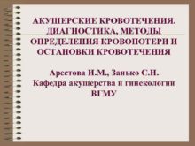 АКУШЕРСКИЕ КРОВОТЕЧЕНИЯ ДИАГНОСТИКА МЕТОДЫ ОПРЕДЕЛЕНИЯ КРОВОПОТЕРИ И ОСТАНОВКИ