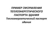 ПРИМЕР ОФОРМЛЕНИЯ ТЕПЛОЭНЕРГЕТИЧЕСКОГО ПАСПОРТА ЗДАНИЯ Теплоэнергетический паспорт здания