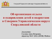 Северный Управленческий округ Свердловской области Об организации отдыха
