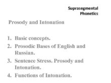 Suprasegmental Phonetics Prosody and Intonation 1 Basic concepts