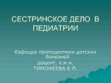 СЕСТРИНСКОЕ ДЕЛО В ПЕДИАТРИИ Кафедра пропедевтики детских болезней
