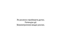 Як рослини сприймають дотик Потенціал дії Біоелектрогенез вищих