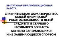 ВЫПУСКНАЯ КВАЛИФИКАЦИОННАЯ РАБОТА СРАВНИТЕЛЬНАЯ ХАРАКТЕРИСТИКА ОБЩЕЙ ФИЗИЧЕСКОЙ РАБОТОСПОСОБНОСТИ