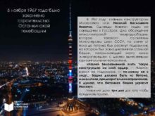 5 ноября 1967 года было закончено строительство Останкинской