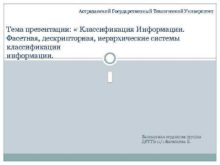 Астраханский Государственный Технический Университет Тема презентации Классификация