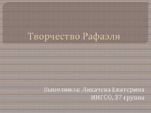 Творчество Рафаэля Выполнила Лихачева Екатерина ИИГСО 37 группа