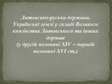 Литовсько-руська держава Українські землі у складі Великого князівства