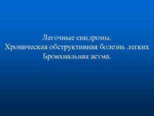 Легочные синдромы Хроническая обструктивная болезнь легких Бронхиальная астма