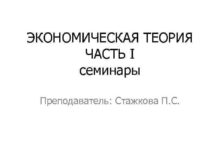 ЭКОНОМИЧЕСКАЯ ТЕОРИЯ ЧАСТЬ I семинары Преподаватель Стажкова П