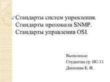 Стандарты систем управления Стандарты протокола SNMP Стандарты управления